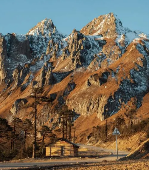 On the border between Nujiang and Diqing, Kongque Mountain rises to 4,400 meters. Stretching north to south, it forms a majestic natural divide between the Lancang and Nujiang river valleys.