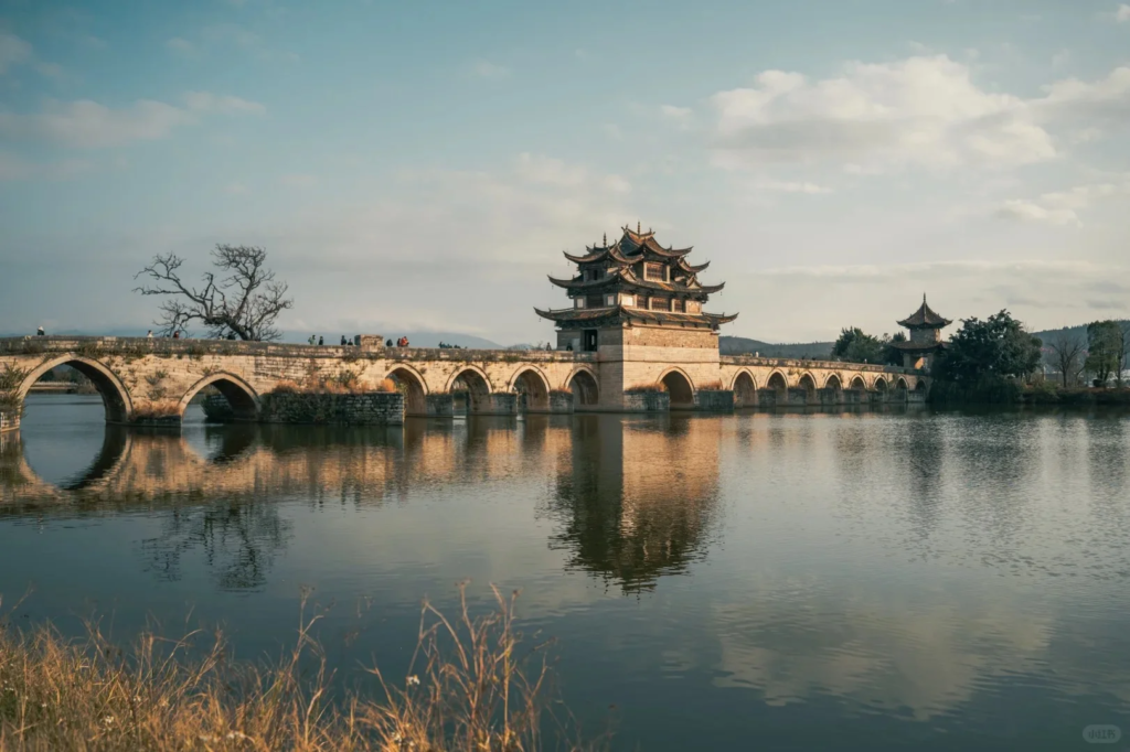 Shuanglong Bridge, a magnificent 17-arch stone bridge from the Qing Dynasty, spans the confluence of two rivers outside Jianshui. At 148 meters long, it’s one of China’s most impressive ancient bridges—a striking blend of engineering strength and aesthetic grace.